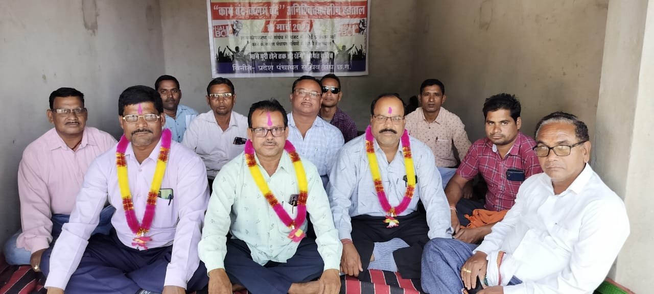 छ.ग.प्रदेश में 32 जिला पंचायत 146 जनपद पंचायत एवं 11546 ग्राम पंचायतों में निवासरत ग्रामीण परिवार तेजी से विकास के क्रितिमान गढ़ रहा है इसके लिए सरकार के साथ मिलकर पंचायत सचिवों ने कड़ी मेहनत की है किंतु प्रदेश की सरकार द्वारा विकास के लिए संकल्पित अंतिम प्रशासनिक इकाई पंचायत का सचिव के साथ हमेशा शोषण किया है जिला एवम जनपद पंचायत के मुख्य कार्यपालन अधिकारी को प्रशासनिक पद घोषित कर सम्पूर्ण सुविधा एवम अधिकार दिया गया है परन्तु ग्राम पंचायत में कार्यरत पंचायत सचिव को 28 वर्ष के कार्यकाल पूर्ण होने के बाद भी आज तक शासकीय कर्मचारी घोषित नहीं किया गया है वर्तमान प्रदेश सरकार द्वारा बार-बार ठगे जाने से नाराज होकर 11546 ग्राम पंचायतों में ताला बंद कर पंचायत सचिव हड़ताल पर है हड़ताल को आज 41 दिन पूर्ण हो गया है किंतु शासन-प्रशासन से अभी तक किसी भी प्रकार की सकारात्मक पहल नहीं किया गया है पंचायत सचिवों ने आज पंचायत राज दिवस से ब्लॉक मुख्यालय में क्रमिक भूख हड़ताल प्रारंभ कर दिया है समय की विडंबना देखिए 28 वर्षों से जवाबदारी का बोझ अपने कंधों पर उठाए पंचायत सचिव को अपने हक के लिए भूखे रहकर हड़ताल करना पड़ रहा है सोमवार को धरना स्थल पर क्रमिक भूख हड़ताल में पंचायत सचिव संघ पामगढ़ के नरेश कुमार यादव दुलीचंद साहू और कमलेश अग्रवाल बैठे।आज द्वितीय दिवस रमेश पटेल अशोक कुमार साहू और देवीप्रसाद कौशिश बैठे।इस प्रकार निरंतर क्रमिक भूख हड़ताल जारी रहेगा,संगठन के हर निर्देश पर पंचायत का सचिव आर पार की लड़ाई के लिए तैयार है।पंचायत सचिव संगठन के ब्लाक इकाई पामगढ़ के अध्यक्ष सकून कुमार साहू,जिला उपाध्यक्ष दिनेश कुमार यादव गजानंद साहू लकेश यादव सुमित सिंह मोहन साहू घासीराम दिवाकर राजकुमार कैवर्त संतराम कैवर्त देवेंद्र कौशिक सहित ब्लॉक के सभी साथी क्रमशः भूख हड़ताल पर बैठेंगे।