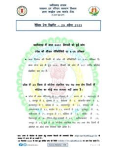 आज दिनांक की स्थिति में प्रदेश की पॉजिटिविटी दर 8.45 प्रतिशत है। आज प्रदेश भर में हुए 3631 सैंपलों की जांच में 307 व्यक्ति कोरोना संक्रमित पाए गए हैं।