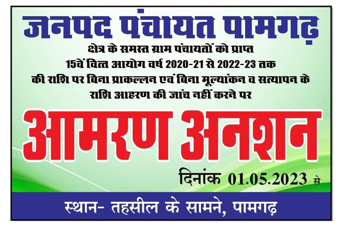 पामगढ़ :- जनपद पंचायत पामगढ़ क्षेत्र के समस्त ग्राम पंचायतो को प्राप्त 15 वे वित्त आयोग वर्ष 2020-21, 2021-22 और 2022- 2023 का जीपीडीपी तैयार किया गया है। जिस कार्यों की बिना प्राक्कलन मुल्याकन सत्यापन के राशि आहरण किया गया है। जिसकी जांच करने के लिए मुख्य कार्यपालन अधिकारी जिला पंचायत जांजगीर चाम्पा को 03/04/23 को पत्र क्र 143 लेख किया गया था जिसपर 24 तारीख तक कोई भी कार्यवाही नही होने पर 24 तारीख को फिर से जिला पंचायत के मुख्यकार्यपालन अधिकारी जांजगीर को लेटर लिखा गया कि 30 अप्रेल तक जाँच कर दोषि पंचायतो के ऊपर उचित कार्यवाही नही करने पर 1 मई दिन सोमवार को आमरण अनसन करने का अल्टीमेटम दिया गया हैं जिसके बाद जिला पंचायत सीईओ के द्वारा 25 अप्रेल को जांच टीम गठित किया गया था पर जिसमे जांच अधिकारी मुख्य कार्यपालन अधिकारी पामगढ़, अनुविभागीय अधिकारी ग्रामीण यांत्रिकी सेवा उप सम्भाग पामगढ़ एवं समंवयक जिला पंचायत जांजगीर को बनाया गया हैं लेकिन रविवार 30 अप्रेल तक किसी भी प्रकार के जाँच शुरू नही होने के कारण जनपद पंचायत पामगढ़ के अध्यक्ष राजकुमार पटेल सोमवार को निर्धारित स्थल पर आमरण अनशन करेंगे।