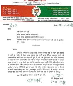 बिग ब्रेकिंग : नंदकुमार साय का बीजेपी से इस्तीफा, पढ़िये पार्टी को भेजा इस्तीफा पत्र