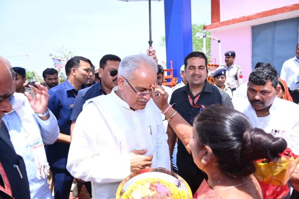 मुख्यमंत्री श्री भूपेश बघेल ने जनपद पंचायत मस्तूरी के बेलटूकरी स्थित रूरल इंडस्ट्रियल पार्क में आजीविका गतिविधियों का अवलोकन किया