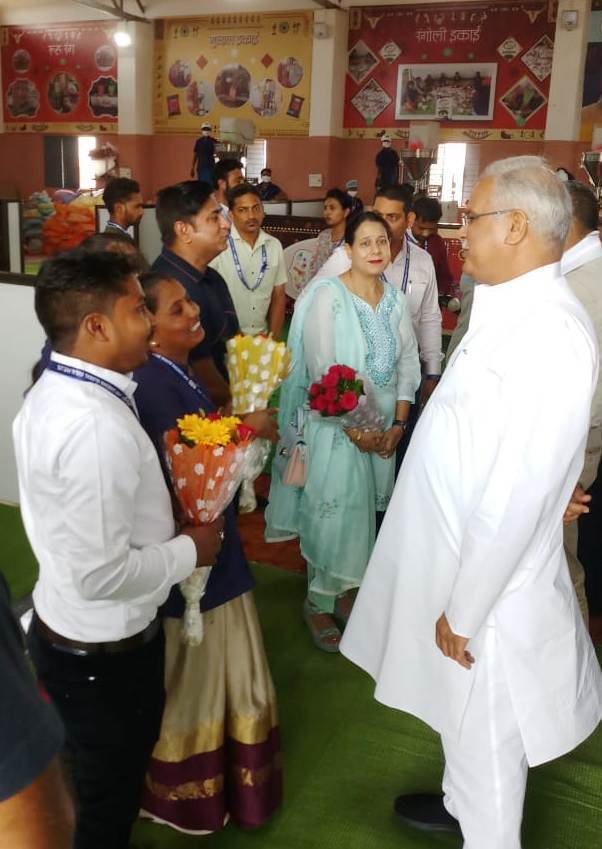 रायपुर- मुख्यमंत्री श्री भूपेश बघेल ने आज सांकरा (पाटन) में आयोजित भरोसे के सम्मेलन में रीपा के महिलाओं के द्वारा निर्मित किये जा रहे पूजन सामग्री, हवन सामग्री, रंग, चन्दन, गुलाल, गुलाब जल, चमेली तेल निर्माण की प्रक्रिया की जानकारी ली। कुमकुम महिला ग्राम संस्थान सान्करा की महिलाओं प्रभा यादव, आरती सिंग गौर, सरिता सिंह गौर, परमेश्वरी साहू ने श्री बघेल को बताया कि महात्मा गांधी औद्योगिक पार्क सान्करा के माध्यम से पूजन सामग्री, हवन सामग्री, रंग, चन्दन, गुलाल, गुलाब जल, चमेली तेल निर्माण करते हैं, जिससे हमें प्रतिदिन 200 रूपए के मान से राशि भुगतान की जाती है।