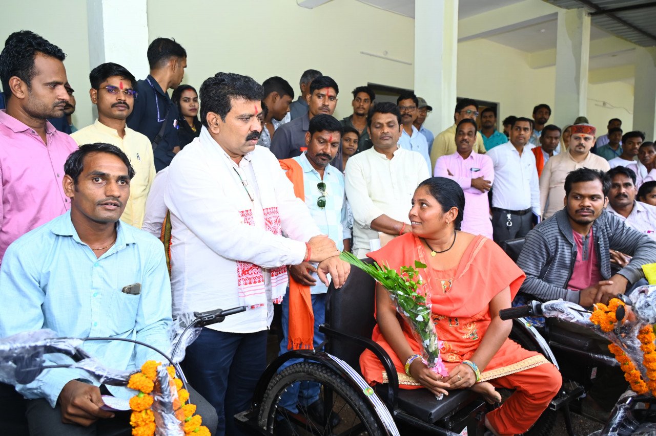 उपमुख्यमंत्री श्री विजय शर्मा ने दिव्यांगजनों को बैटरी चलित मोटराइज्ड ट्रायसायकल और व्हील चेयर का किया वितरण