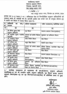 इसके अलावा नंद कुमार मेश्राम को जेल विभाग, मनीराम रात्रे को मछली पालन विभाग, कुसुम कांत को कौशल विकास तकनीकी शिक्षण रोजगार विभाग, बसंत कुमार ध्रुव को वित्त विभाग, नीलांबर ओहदार को सामान्य प्रशासन विभाग कक्ष-13, सुदर्शन यादव को लोक निर्माण विभाग, वीरेंद्र कुमार को वित्त विभाग और कुंज लाल यादव को गृह विभाग एनआरआई सेल की जिम्मेदारी दी गई है