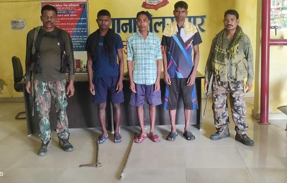बीजापुर :- जिले में चलाये जा रहे माओवादी विरोधी अभियान के अंतर्गत थाना नेलसनार एवं केंद्रीय रिजर्व पुलिस 199 वाहिनी कैंप कोडोली की संयुक्त टीम द्वारा मिरतुर-कोडोली चौक पर वाहनों की चेकिंग की जा रही थी। चेकिंग के दौरान 03 माओवादी, जनमिलिशिया कमांडर कमलू बेंजाम (एक लाख का इनामी) सहित मंगलू तेलाम और राजू तेलाम को धारदार हथियार के साथ पकड़ा गया।