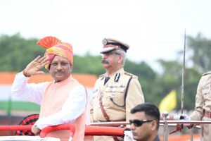 मुख्यमंत्री श्री विष्णु देव साय ने आज सवेरे राजधानी रायपुर के पुलिस परेड मैदान में आयोजित स्वतंत्रता दिवस के राज्य स्तरीय समारोह में ध्वजारोहण कर परेड की सलामी ली