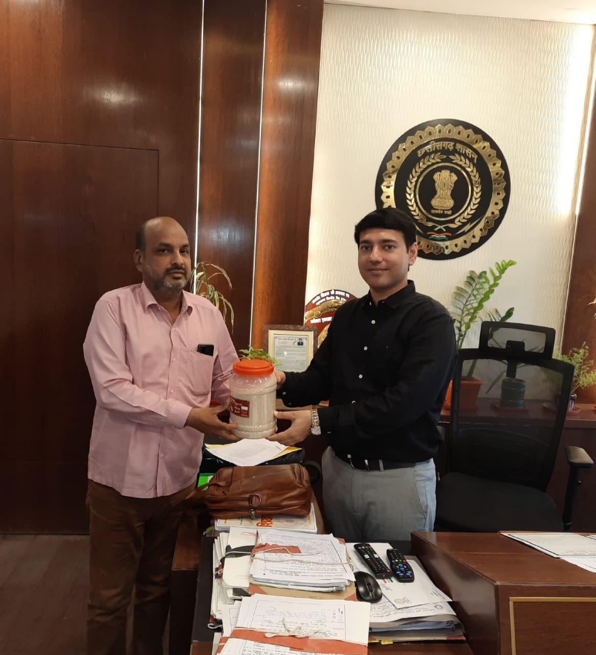 प्रगतिशील कृषक श्री राम प्रकाश ने की कलेक्टर से मुलाकात, महेश्वर फूल धान से होने वाले लाभ की दी जानकारी