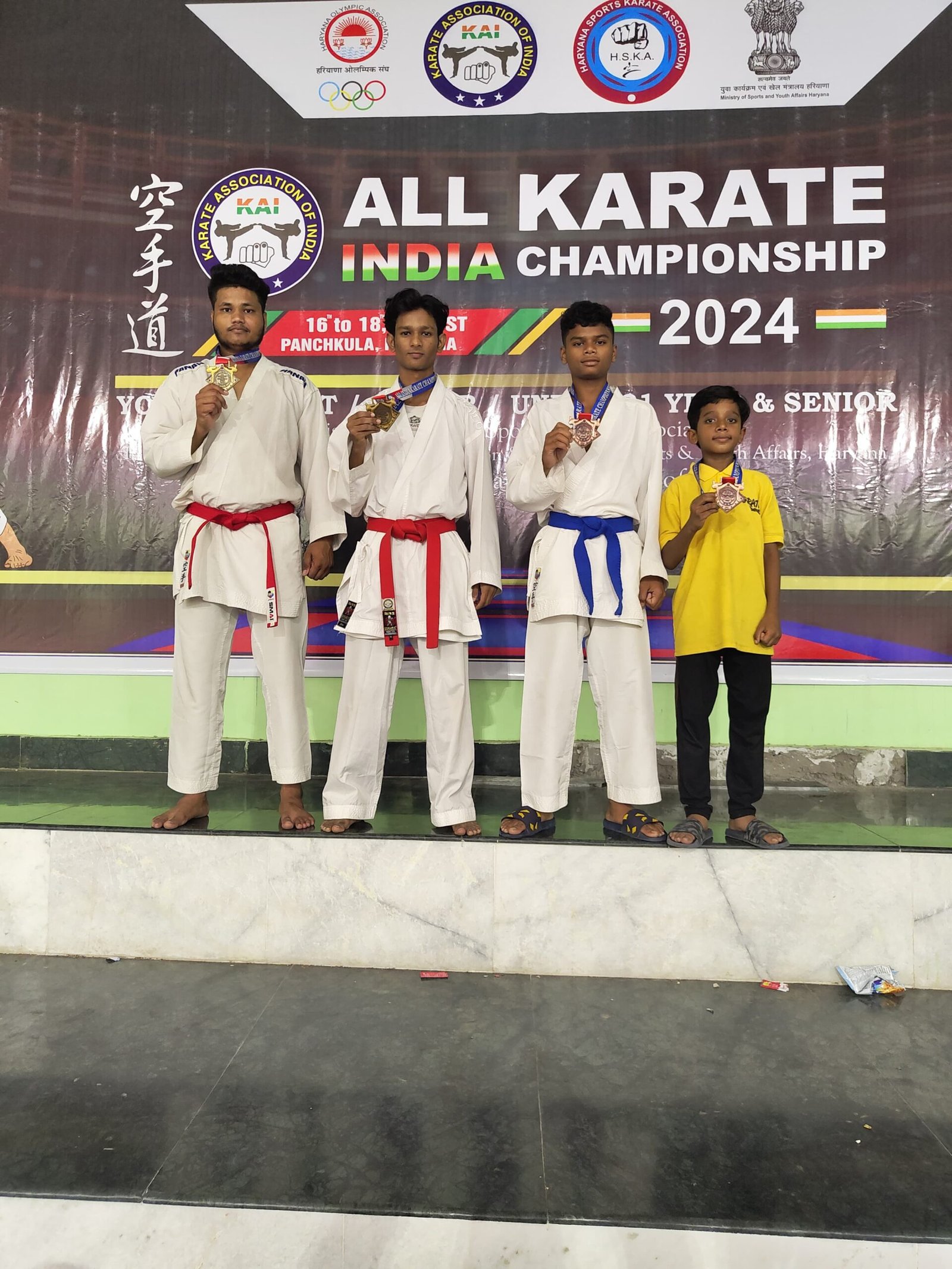 जांजगीर चांपा :- कराते एसोसिएशन ऑफ इंडिया (KAI) के दवारा ओलंपिक भवन, ताऊ देवीलाल इनडोर स्टेडियम, पंचकुलाहरियाणा में ऑल इंडिया कराते चेम्पियनशिप दिनांक 16,17, एवं 18 अगस्त 2024 को आयोजित किया गयाथा। जिसका समापन 18 अगस्त को हुआ। इस चेम्पियनशिप में 15 राज्यो के लगभग 1800 खिलाड़ीयो नेभाग लिया। जिसमें छतीसगढ़ से भी 86 खिलाडी एवं 15 ऑफिशल की टीम ने भाग लिया छत्तीसगढ़ कीटीम ने 03 गोल्ड मेडल, 01 सिल्वर मेडल एवं 11 ब्राउन्स मेडल प्राप्त किया ।