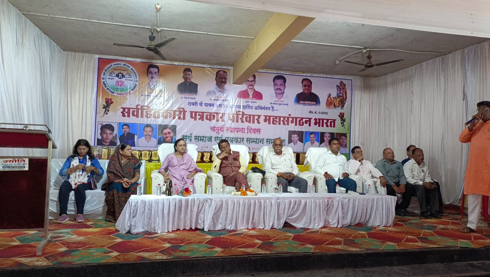 पामगढ़ :- सर्वहितकारी पत्रकार परिवार महा संगठन भारत का चतुर्थ स्थापना दिवस छत्तीसगढ़ के जांजगीर चांपा जिले में स्थित टेंपल सिटी शिवरीनारायण के महानदी तट पर स्थित सत्संग भवन में सर्वहितकारी प्रेस क्लब के छत्तीसगढ़ प्रदेश अध्यक्ष मुरली नायर एन डब्लू सी मेंबर सरोज सारथी राष्ट्रीय सचिव अरुण कश्यप संरक्षक अवधेश सिंह के कुशल नेतृत्व में संपन्न हुआ जिसमें मुख्य अतिथि के रूप में छत्तीसगढ़ के जाने-माने हास्य कवि पद्मश्री डॉ सुरेंद्र दुबे जी और पामगढ़ विधानसभा क्षेत्र के लोकप्रिय विधायक श्रीमती शेष राज हरबंस शिवरीनारायण नगर पंचायत अध्यक्ष अंजनी मनोज तिवारी पूर्व मंत्री रामकुमार पटेल,भाजपा जिला अध्यक्ष गुलाब सिंह चंदेल, वरिष्ठ पत्रकार दिलीप सिंह,रोहित शुक्ला , संतोष साहू, सुबोध शुक्ला, सुनील साहू,नर्मदा घोसले के गरिमा में उपस्थित रही स्थापना दिवस के अवसर पर उत्कृष्ट कार्य करने वाले लोगों को स्मृति चिन्ह और सम्मान पत्र देकर उन्हें राष्ट्रीय मंच पर सम्मानित किया गया जिसमें शिक्षक पत्रकार कोच खिलाड़ी डॉक्टर लोक कलाकार समाज सेवक छात्र-छात्राएं जैसे सभी प्रतिभावान इस कार्यक्रम में शामिल हुए अतिथियों के हाथों सम्मानित हुए इस कार्यक्रम में स्थानीय पत्रकार अजय केवट गोपाल केवट सुरेश गुनी मेला राम कश्यप बंसी केवट धनवीर जाहिर शिव शर्मा सहित कई राज्यों से आए वरिष्ठ पत्रकार एवं छत्तीसगढ़ के लगभग सभी जिले से आए वरिष्ठ पत्रकारों की गरिमा में उपस्थिति रही