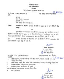रायपुर :- छत्तीसगढ़ शिक्षा विभाग ने शैक्षणिक सत्र 2024-2025 प्रदेश के सभी शैक्षणिक संस्थानों में प्रवेश की अंतिम तारीख बढ़ा दी है. जिन छात्रों ने स्कूल या कॉलेज में अब तक प्रवेश नहीं लिया है, उनके लिए एड्मिशन लेने का यह एक बेहतरीन मौका है