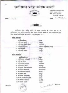 रायपुर :- छत्तीसगढ़ में राजनीतिक दल आगामी नगरीय निकाय चुनाव की तैयारियों में जुटे हुए है. चुनावों की तैयारियों के तहत प्रदेश कांग्रेस कमेटी चीफ दीपक बैज के निर्देश पर आज असंगठित क्षेत्र समस्या निवारण प्रकोष्ठ में प्रदेश कार्यकारिणी और नए जिला अध्यक्षों की नियुक्ति की गई है। पार्टी की ओर से प्रदेश कार्यकारिणी और नए जिला अध्यक्षों के नामों की सूची भी जारी की गई है।