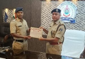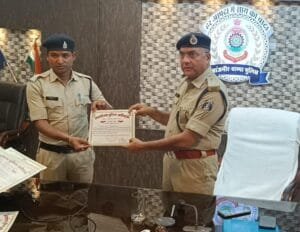पुलिस अधीक्षक द्वारा महानदी के टापू में फंसे लोगों को बाहर निकालने वाले पुलिसकर्मियों एवं ग्रामीणों को किया गया सम्मानित