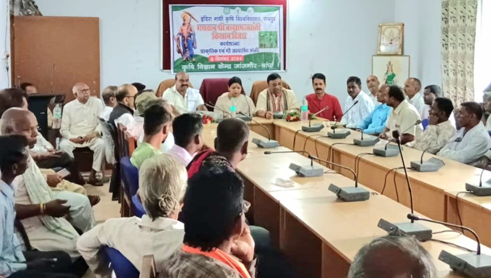 जांजगीर-चांपा 09 सितम्बर 2024/ सांसद जांजगीर-चांपा श्रीमती कमलेश जांगड़े के मुख्य आतिथ्य में, विधायक जांजगीर-चांपा श्री ब्यास नारायण कश्यप की अध्यक्षता एवं पूर्व विधायक श्री नारायण चंदेल के विशिष्ट आतिथ्य में कृषि विज्ञान केंद्र जांजगीर-चांपा में भगवान श्री बलराम जयंती सह कृषक गोष्ठी का आयोजन किया गया। कार्यक्रम का शुभारंभ भगवान श्री बलराम के तैलचित्र एवं कृषि यंत्रों की पूजा अर्चना कर किया गया।