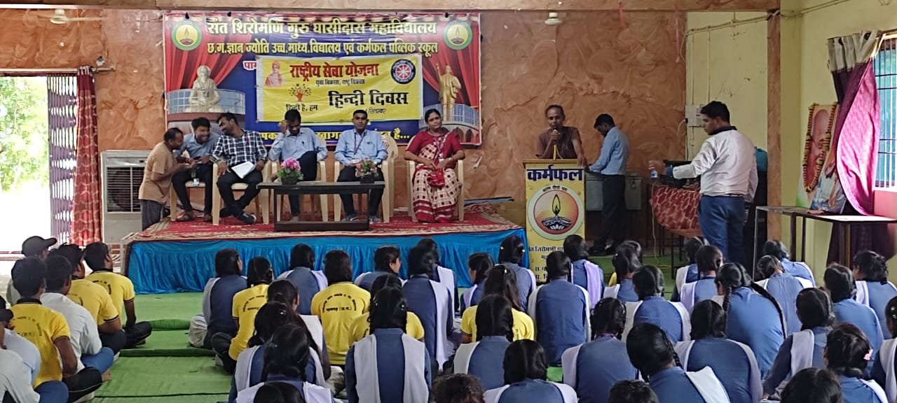 संत शिरोमणि गुरु घासीदास महाविद्यालय एवं छत्तीसगढ़ ज्ञान ज्योति उच्चतर माध्यमिक विद्यालय पामगढ़ के संयुक्त तत्वावधान में हिन्दी दिवस का हुआ आयोजन