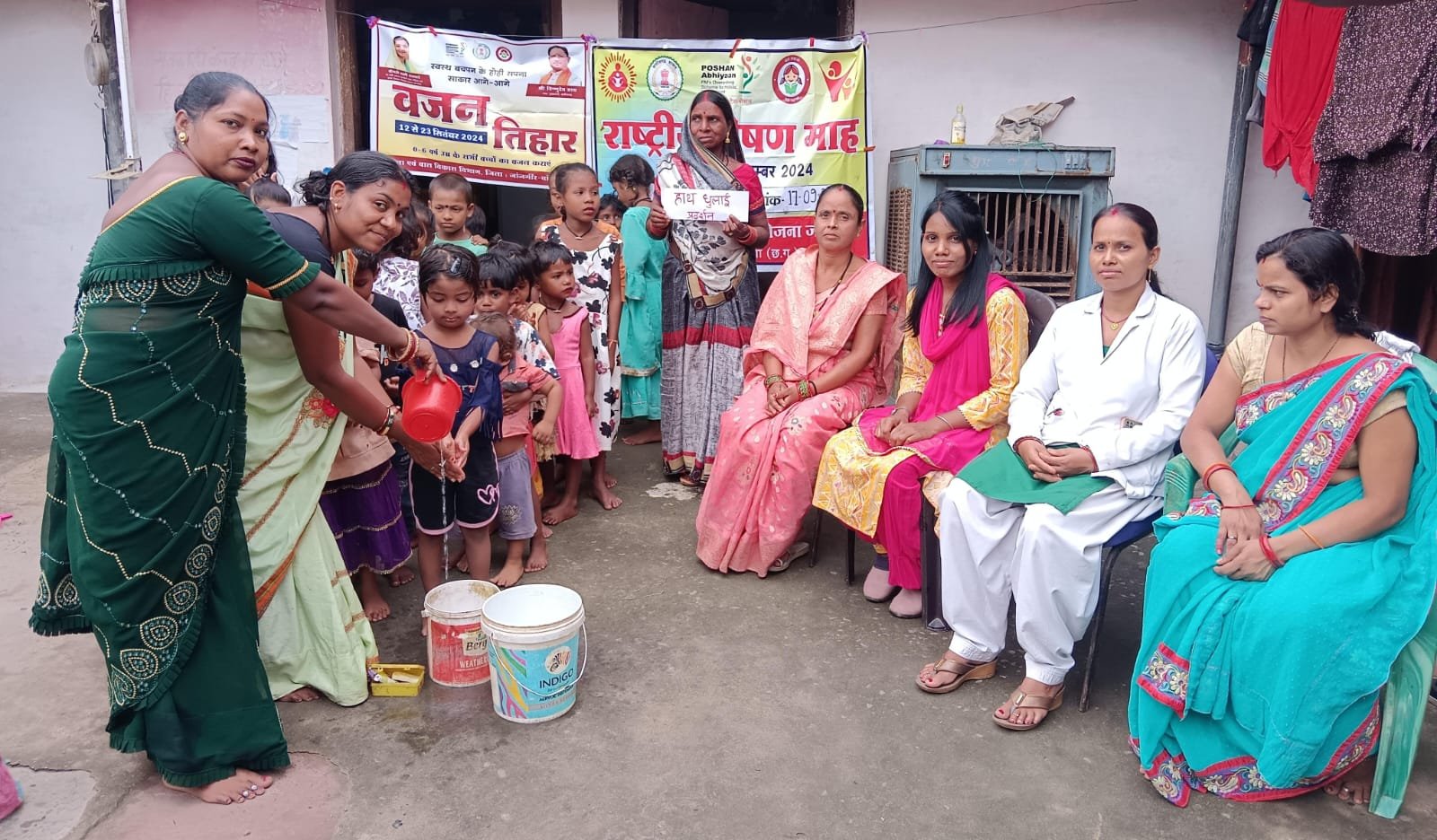 जांजगीर-चांपा :- कलेक्टर श्री आकाश छिकारा के निर्देश में जिले में सक्षम आंगनबाडी एवं पोषण 2.0 अंतर्गत पोषण अभियान जनसमुदाय तक स्वास्थ्य पोषण एवं स्वच्छता संबंधी व्यापक प्रचार प्रसार एवं प्रभावी व्यवहार प्ररिवर्तन हेतु जन आन्दोलन के रूप में प्रति वर्ष राष्ट्रीय पोषण माह का आयोजन किया जा रहा है। राष्ट्रीय पोषण माह के दौरान एनिमिया, वृध्दि निगरानी, पूरक आहार, पोषण भी पढाई भी, बेहतर प्रशासन व पारदर्शिता एवं कुुशल सेवा वितरण के लिए प्रौद्योगिकी एवं समग्र पोषण पर गतिविधीयां आयोजित किया जा रहा है।