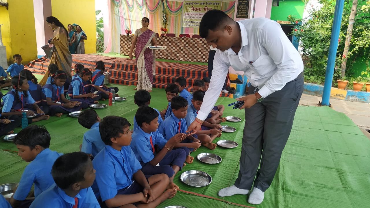एसडीएम श्री आशुतोष देवांगन ने नाना के याद में किया स्कूल में न्यौता भोज का आयोजन