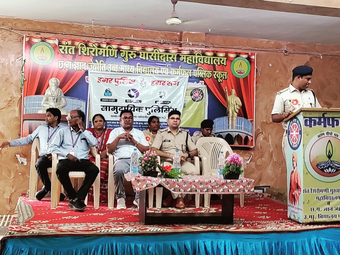 जांजगीर चांपा :- श्री विवेक शुक्ला (IPS) पुलिस अधीक्षक जांजगीर-चाम्पा के निर्देशन में जिला पुलिस जांजगीर द्वारा लोगो को जागरूक करने के लिए हमर पुलिस हमर संग कार्यक्रम अभियान चलाया जा रहा है। इसी क्रम में दिनांक 24.09.2024 को अति. पुलिस अधीक्षक जांजगीर श्री राजेन्द्र कुमार जायसवाल के कुशल मार्गदर्शन में हमर पुलिस हमर संग कार्यक्रम का आयोजन उपनिरी. मनोहर लाल सिन्हा थाना प्रभारी पामगढ़ द्वारा पामगढ़ क्षेत्र के अंतर्गत संत शिरोमणि गुरु घासीदास महाविद्यालय में कार्यक्रम का आयोजन किया गया।
