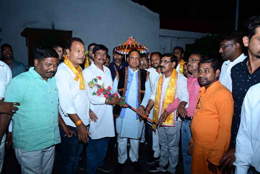रायपुर :- स्थित मुख्य मंत्री निवास में छत्तीसगढ़ी यादव समाज के प्रमुखों ने डा सोमनाथ यादव प्रदेश अध्यक्ष भारतीय यादव महासभा के नेतृत्व में मुख्यमंत्री श्री विष्णु देव साय से भेंट कर आठ सूत्रीय मांग का पत्र सौंपा। मुख्य मंत्री श्री साय ने यादव समाज की मांगो पर उचित और ठोस कार्यवाही करने का आश्वासन दिए। इस अवसर पर यादव समाज द्वारा मुख्यमंत्री श्री विष्णु देव साय को राउत जैकेट, खुमरी पहनाकर, शाल, लाठी, स्मृति चिन्ह भेंट कर सम्मानित किया गया।