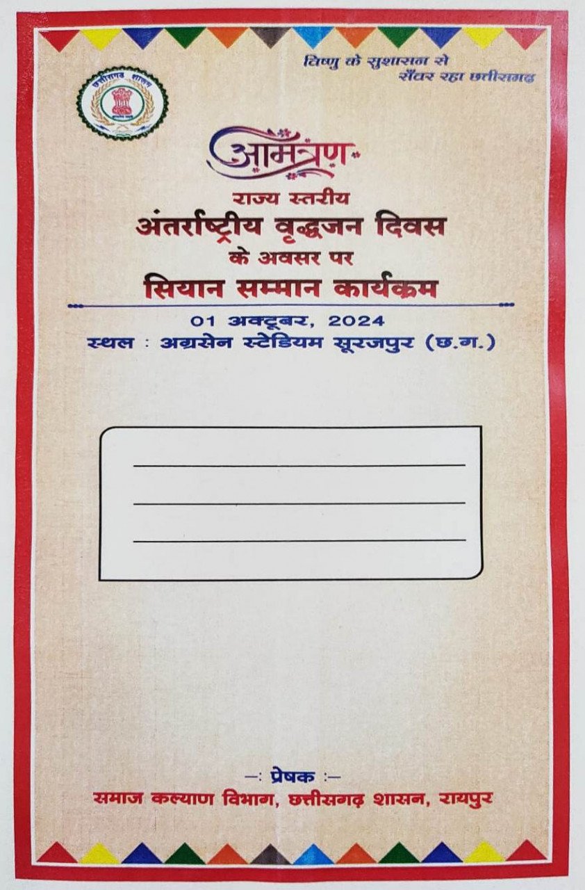 अंतर्राष्ट्रीय वृद्धजन दिवस: सियान सम्मान कार्यक्रम सूरजपुर जिले में 01 अक्टूबर को आयोजित
