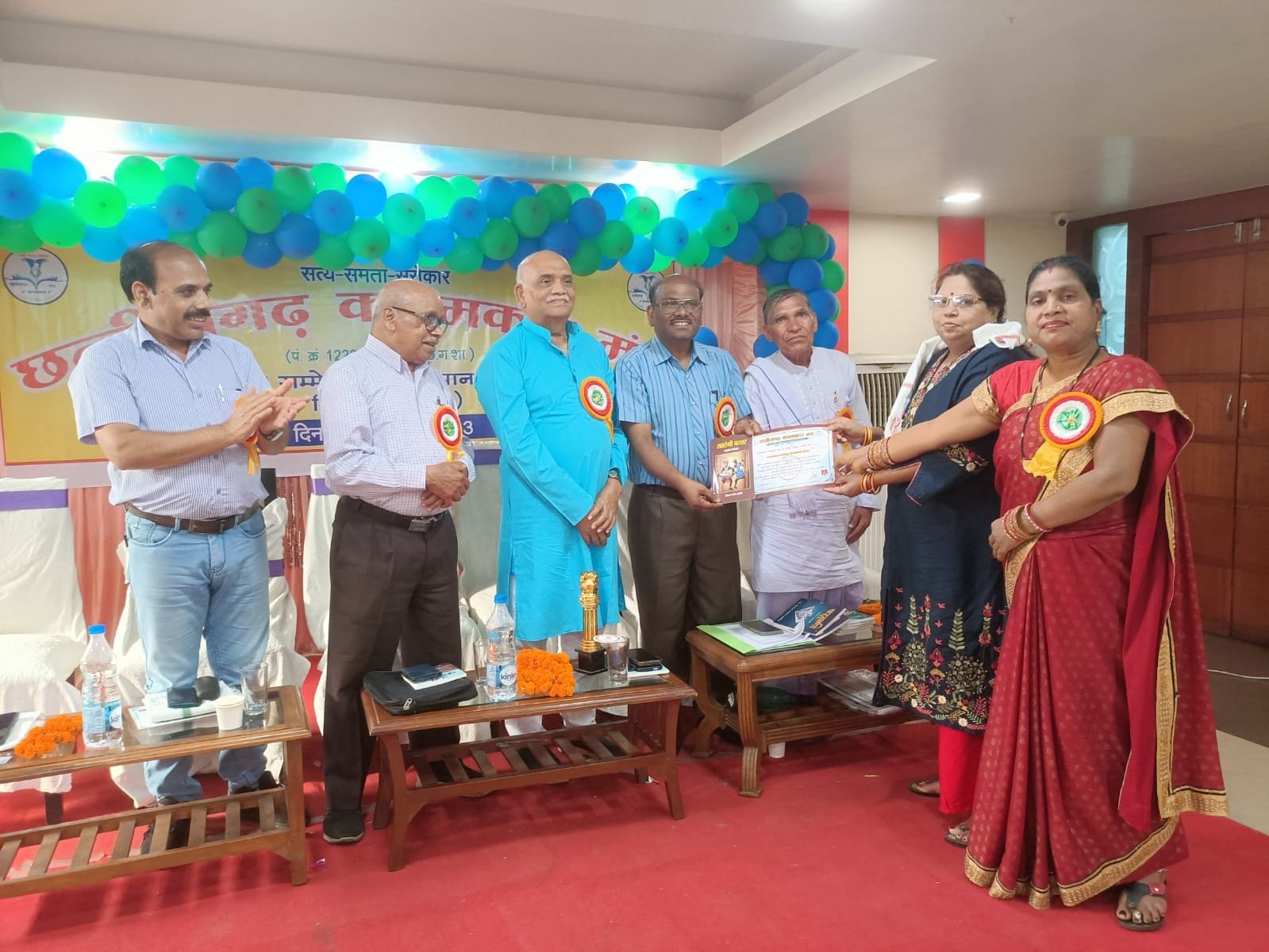 पामगढ़ :- प्रतिष्ठित छत्तीसगढ कलमकार मंच द्वारा वार्षिक सम्मेलन बिलासपुर के अमरोल्ड होटल के गरिमामय समारोह आयोजित किया गया जिसमे मुख्य अतिथि डॉ जे आर, सोनी ,चेतन भारती जी डॉ प्यारे लाल आदिले अंतर्राष्ट्रीय अवॉर्डी एवम विश्व विख्यात प्रवक्ता शिक्षा विद तथा आयोजक डॉ किशन क्रांति जी के आतिथ्य में संपन्न हुआ l इस अवसर पर पामगढ़ अंचल के नवोदित कलमकार कवियत्री श्रीमती मंजू कुंज जी व्याख्यता शास विधालय भिलोनी के प्रभाव शाली लेखन , उदात्त मनाववादी विचार धारा के धनी कविता लेखन के चरमोत्कर्ष प्रयास के लिए कलमकार साहित्य अलंकरण से सम्मानित किया गया।। अभी तक 70से अधिक मानवीय मूल्यों भावनाओ को पुष्पित पल्लवित करने वाली कविता की मौलिक रचनाएं की है । एक दर्जन से अधिक कविता विभिन्न साझा संग्रह में प्रकाशित किया गया है। उनकी प्रमुख रचना मेरी व्यथा, ऐ ज़िंदगी, औरत एक मां, ऐ चांद साहित्य जगत में तहलका मचा रही है। उन्हे पूर्व में मौलाना आजाद शिक्षा रत्न अवार्ड, बामसेफ अलंकरण, पर्यावरण अवार्ड, उत्कृष्ट शिक्षक पुरूस्कार से सम्मानित किया गया है उनके इस अप्रतिम सफलता पर उनके पति डॉ कुंज किशोर प्राचार्य लकरा मैम प्राचार्य भिलोनी, मनोज साहू प्राचार्य, छमान महंत जी , नीता मैम ,एवम उनकी माताजी श्रीमती अंबिका मनहर जी के द्वारा हर्ष व्यक्त करते हुए शुभकामनाएं प्रेषित किए हैं