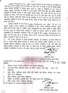 राजस्व विभाग के सचिव अविनाश चम्पावत की ओर से जारी पत्र में कहा गया है कि न्यायालयीन प्रकरणों के निराकरण उपरांत असंतुष्ट पक्षकारों द्वारा विधिवत अपील की कार्यवाही न कर सीधे पीठासीन अधिकारी के विरूद्ध पुलिस में शिकायत दर्ज कराई जा रही है, और पुलिस भी प्राथमिकी दर्ज कर पीठासीन अधिकारी को नोटिस दे रही है. इस प्रकार न्यायाधीश (संरक्षण) अधिनियम, 1985 के प्रावधानों के अंतर्गत राजस्व न्यायालय के पीठासीन अधिकारियों को संरक्षण प्राप्त नहीं हो पा रहा है