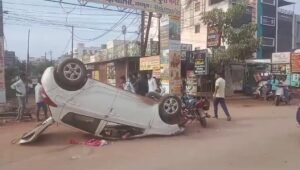 BREAKING NEWS : नशे में धुत युवक की कार ने खोया संतुलन, डिवाइडर से टकराते ही 10 फीट हवे में उड़ती हुई कार पलटी