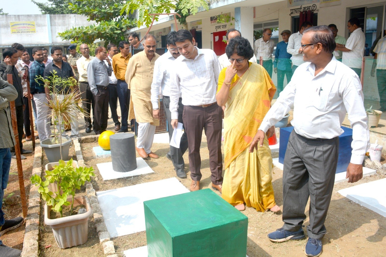 व्याख्याता श्री चेतन प्रसाद साहू ने बताया कि उद्यान के माध्यम से गणित के विभिन्न सिद्धांतों और संकल्पनाओं को सरल और रचनात्मक ढंग से प्रस्तुत करने के उद्देश्य से विकसित किया गया है, जिससे विद्यार्थियों और गणित प्रेमियों में इस विषय के प्रति रुचि जागृत हो सके। निरीक्षण के दौरान कलेक्टर ने उद्यान में रखे गए विभिन्न गणितीय मॉडलों, गतिविधियों और प्रदर्शनों की विस्तार जानकारी ली। इसके अलावा स्कूल की प्रयोगशाला, विद्यार्थियों से भी चर्चा करते हुए उनसे सिलेबस के बारे में जानकारी ली और जिले में चलाए जा रहे उत्कृष्ट जांजगीर अभियान के सम्बंध में जानकारी दी।