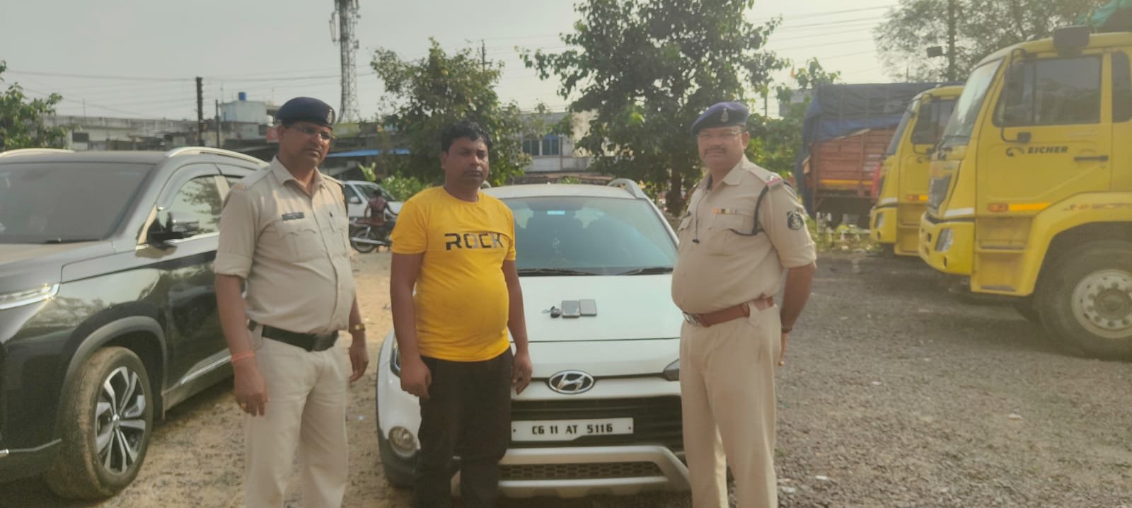 आरोपी के कब्जे से धोखाधड़ी का बंटवारा रकम से खरीदी एक कार i-20- क्रमांक CG 11- 5116 एवं एक नग मोबाइल को किया गया बरामद