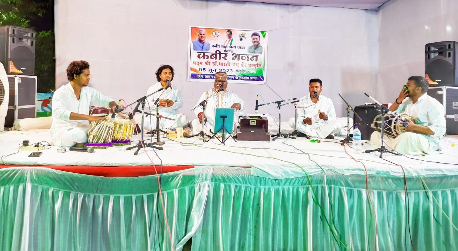जांजगीर चांपा जून 2023/ संत कबीर साहेब के 625वीं अवतरण दिवस जयंती वर्ष के उत्सव पर कबीर सद्भावना यात्रा में कबीर गायन के माध्यम से कबीर सद्भावना को जनमानस में प्रसारित करने तथा लाभांवित करने के उद्देश्य से पद्मश्री डॉ. भारती बंधु द्वारा जांजगीर चांपा में पर्यटन एवं संस्कृति विभाग और जिला प्रशासन द्वारा आयोजित बी.डी. महंत उद्यान जांजगीर में “कबीर भजन” की मनमोहक प्रस्तुति दी गई। इस दौरान भारती बंधु ने शास्त्रीय संगीत की विभिन्न विधाओं में कबीर के दोहे पेश किए। उनके गायन का अंदाज, जिसने उन्हें ख्याति दिलाई है, उससे श्रोता मंत्रमुग्ध हो गए।