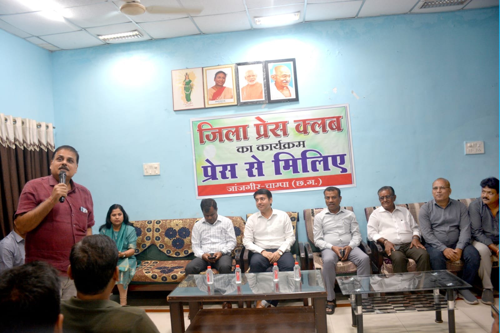 जांजगीर चांपा :- जिला प्रेस क्लब के आयोजन प्रेस से मिलिए में अतिथि के रुप में पहुंचे जांजगीर चांपा के कलेक्टर आकाश छिकारा ने पत्रकारों से कहा कि कुछ समय में जिले की प्रमुख सड़को का कायाकल्प होगा, कुछ कार्य शुरु हो गये कुछ जल्दी ही आरंभ हो जायेंगे । जिले के शिल्प और विशेषताओं को सही प्लेटफार्म पर प्रदर्शित करने की योजना पर कार्य चल रहा है । शिक्षा और स्वास्थ्य पर पूरा फोकस है । साथ साथ स्पोर्ट्स कांम्पलेक्स का निर्माण होगा , खेल में कई स्तरीय इंडोर और आउटडोर सेंटर बनेंगे। आकाश छिकारा ने इस दौरान अपनी शिक्षा और संघर्ष पर भी विस्तार से चर्चा की। उन्होंने प्रेस से मिलिए जैसे सकारात्मक और सौहार्दमय कार्यक्रम की भी प्रशंसा की।