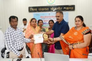 जांजगीर-चांपा :- विश्व शौचालय दिवस के अवसर पर राज्य स्तर से आयोजित वीडियो कॉन्फ्रेंस के माध्यम से उप मुख्यमंत्री एवं पंचायत एवं ग्रामीण विकास मंत्री श्री विजय शर्मा ने संबोधित करते हुए विश्व शौचालय दिवस का शुभारंभ किया। इस दौरान वीसी के माध्यम से कार्यक्रम में जनप्रतिनिधि, विभागीय अधिकारी कर्मचारी, स्वच्छता दीदी, सरपंचआदि जुड़े। जिला पंचायत सभाकक्ष में हमारा शौचालय हमारा सम्मान-विश्व शौचालय दिवस के अवसर पर कलेक्टर श्री आकाश छिकारा के निर्देशन में प्रबंधन समिति की समीक्षा बैठक आयोजित की गई।