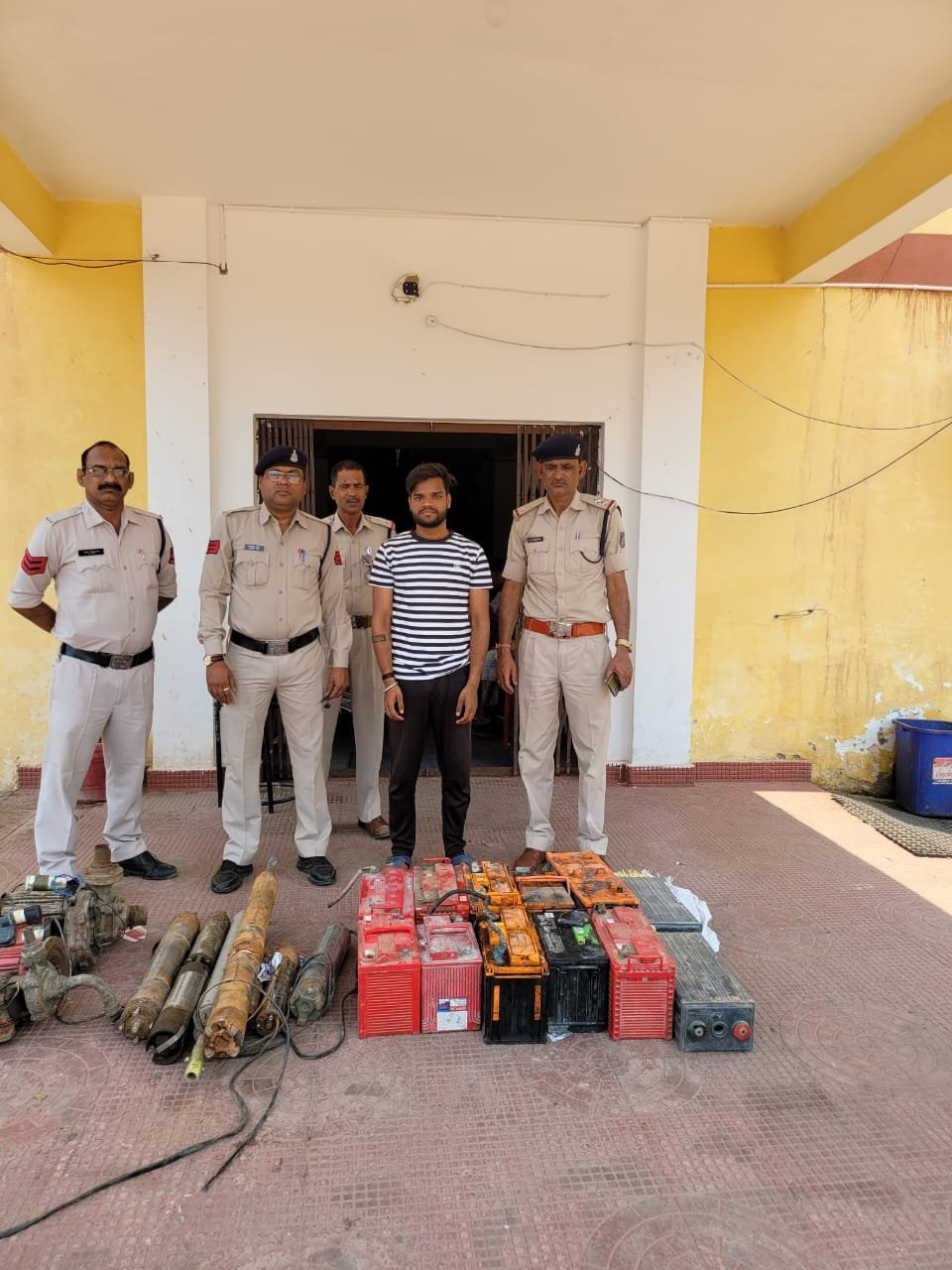 आरोपी 01 दीपक निवासी सारागांव 02 मोहर सिंह उर्फ सोनू निवासी केरा रोड जांजगीर गया जप्त टुल्लू पंप 04 नग, कबाड़ समान, सबमर्शिबल पंप 07 नग, बैटरी 12 नग, एल्युमिनियम रॉड जुमला कीमती 3,60,000 रुपया आरोपियों के विरुद्ध धारा 41, (1) (4) crpc एवम 379 lipc के तहत की गई कार्यवाही