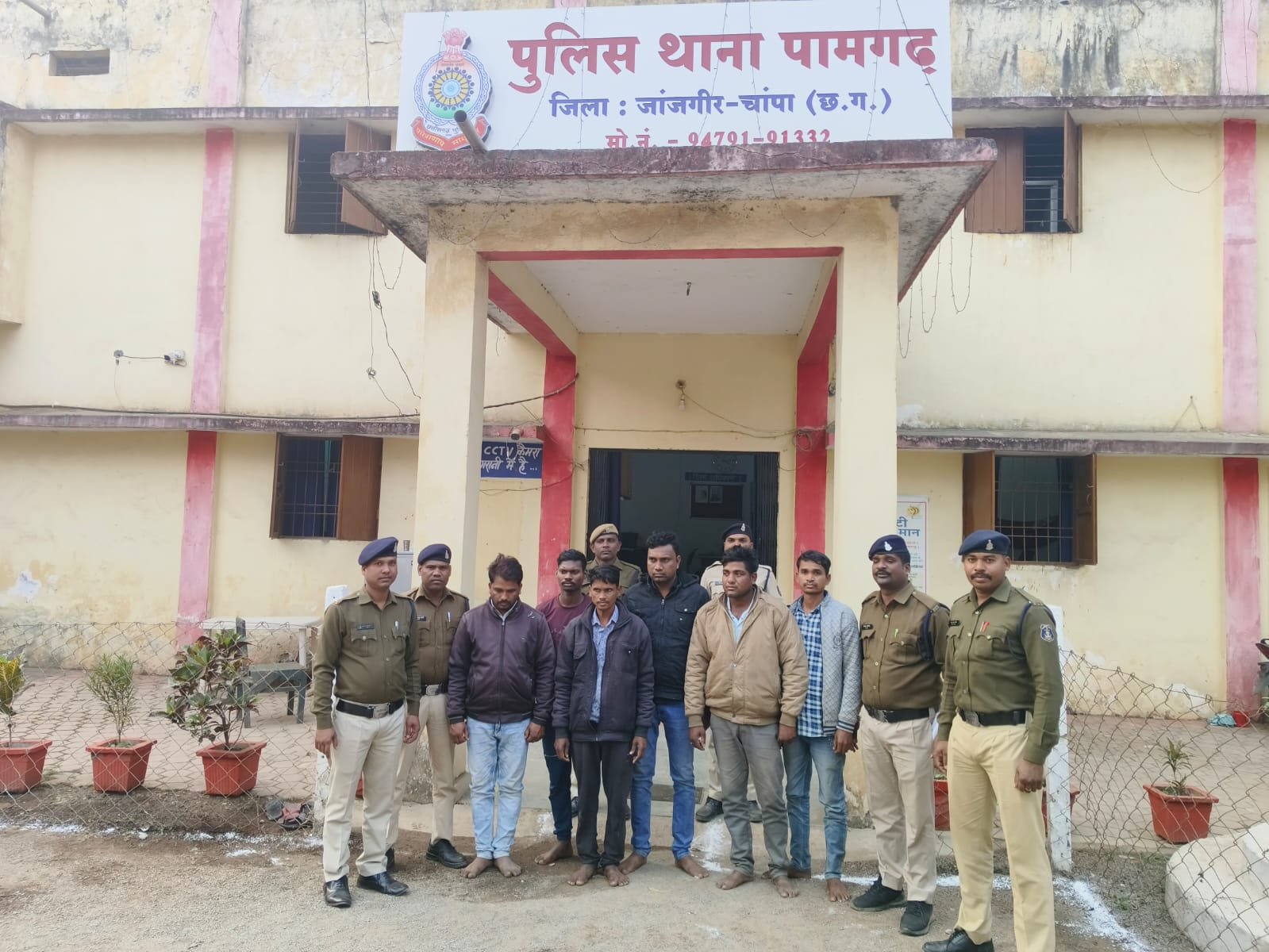 जांजगीर चांपा :- नाम आरोपी – 01.विकास बंजारे पिता गोरेलाल बंजारे उम्र 34 वर्ष निवासी भरथरी थाना जरहागांव जिला मुंगेली (छ.ग.) 02.रामकिशुन टण्डन पिता लखीराम टण्डन उम्र 28 वर्ष निवासी बिरगहनी थाना जरहागांव जिला मुंगेली (छ.ग.), 03.रामेश्वर प्रसाद शास्त्री पिता बाबुलाल उम्र 38 वर्ष निवासी बेलपुरी थाना पथरिया जिला मुंगेली (छ.ग.) 04.दीपक कांत पिता छतराम कांत उम्र 34 वर्ष निवासी जोरैला थाना पामगढ़ जिला जांजगीर चाम्पा (छ.ग.) 05.मंजीत जांगड़े पिता गोवर्धन जांगड़े उम्र 35 वर्ष निवासी जोरैला थाना पामगढ जिला जांजगीर चाम्पा (छ.ग.) 06.देवराज भुआर्य पिता नोहर सिंह भुआर्य ग्राम कुम्हली थाना मोहला जिला मोहला मानपुर (छ.ग.),