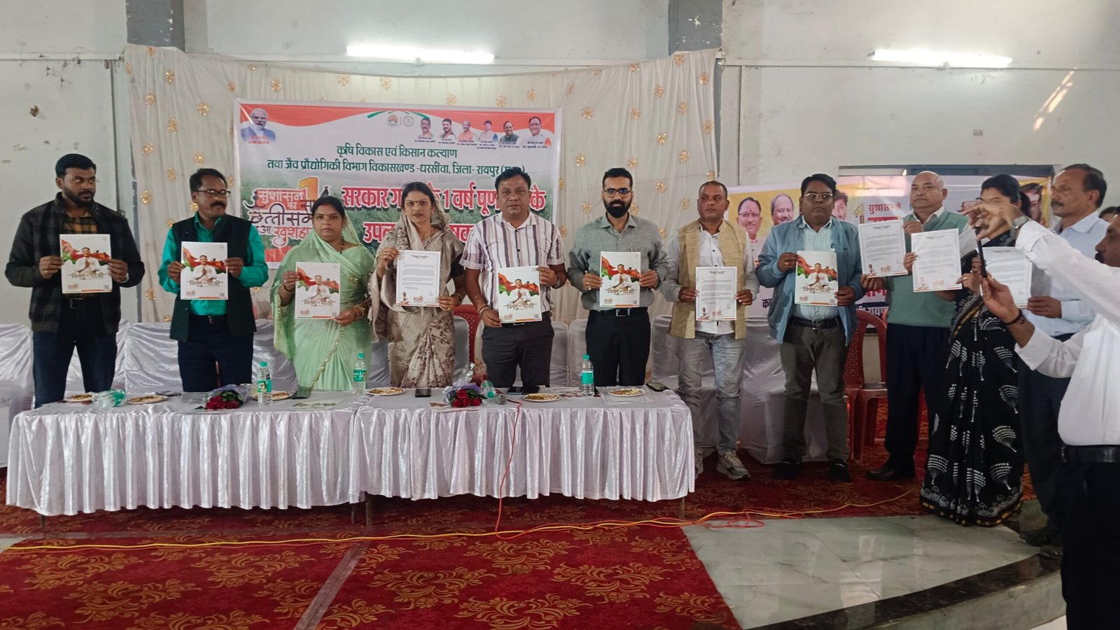 रायपुर :- मुख्यमंत्री श्री विष्णुदेव साय के नेतृत्व वाली सरकार के एक वर्ष पूर्ण होने के उपलक्ष्य में सुशासन का एक साल, छत्तीसगढ़ हुआ खुशहाल के तहत धरसींवा विकासखंड में किसान सम्मेलन सह संगोष्ठी का आयोजन किया गया। सम्मेलन में मुख्य अतिथि के तौर पर जनपद अध्यक्ष उत्तरा कमल भारती एवं कार्यक्रम की अध्यक्षता श्री राकेश यादव ने दी।