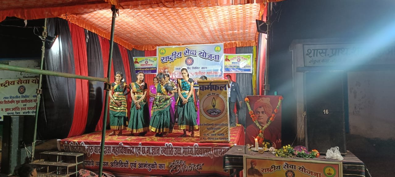 साथ ही स्वयं सेविकाओं द्वारा सांस्कृतिक कार्यक्रम प्रस्तुत किया गया।इस कार्यक्रम का संचालन विधि पूर्ण तरीके से संस्था के राष्ट्रीय सेवा योजना के कार्यक्रम अधिकारी श्री फनीराम जांगड़े सर जी द्वारा किया गया। कार्यक्रम के मुख्य अतिथि के रूप में मुख्य अतिथि- श्रीमती लक्ष्मीन बाई शिवनारायण कश्यप (सरपंच, ग्राम पंचायत बारगांव),अध्यक्षता-श्री रूपराम साहू (प्रधानपाठक, शास. प्राथमिक शाला बारगांव),श्री जमुना सिंह दिनकर (जनपद सदस्य, जनपद पंचायत पामगढ़),श्री डुलीचंद साहू (सचिव, ग्राम पंचायत बारगांव),विशिष्ट अतिथि-श्री रेवाराम बंजारे (उपसरपंच, ग्राम पंचायत बारगांव),श्री सुरेन्द्र भार्गव (प्रभारी प्राचार्य, संत शिरोमणि गुरु घासीदास महाविद्यालय पामगढ़,श्री डी. के. सुमन (प्राचार्य, छ.ग. ज्ञान ज्योति उच्च. माध्य, विद्या. पामगढ़),श्रीमती रंभा मनहर अनंत (प्राचार्य, कर्मफल पब्लिक स्कूल पामगढ़),श्रीमती लक्ष्मी देवांगन (शिक्षिका, शास. प्राथमिक शाला बारगांव),श्रीमती कुमुद तिवारी (शिक्षिका, शास. प्राथमिक शाला बारगांव) व अन्य गणमान्य नागरिक उपस्थित रहे।