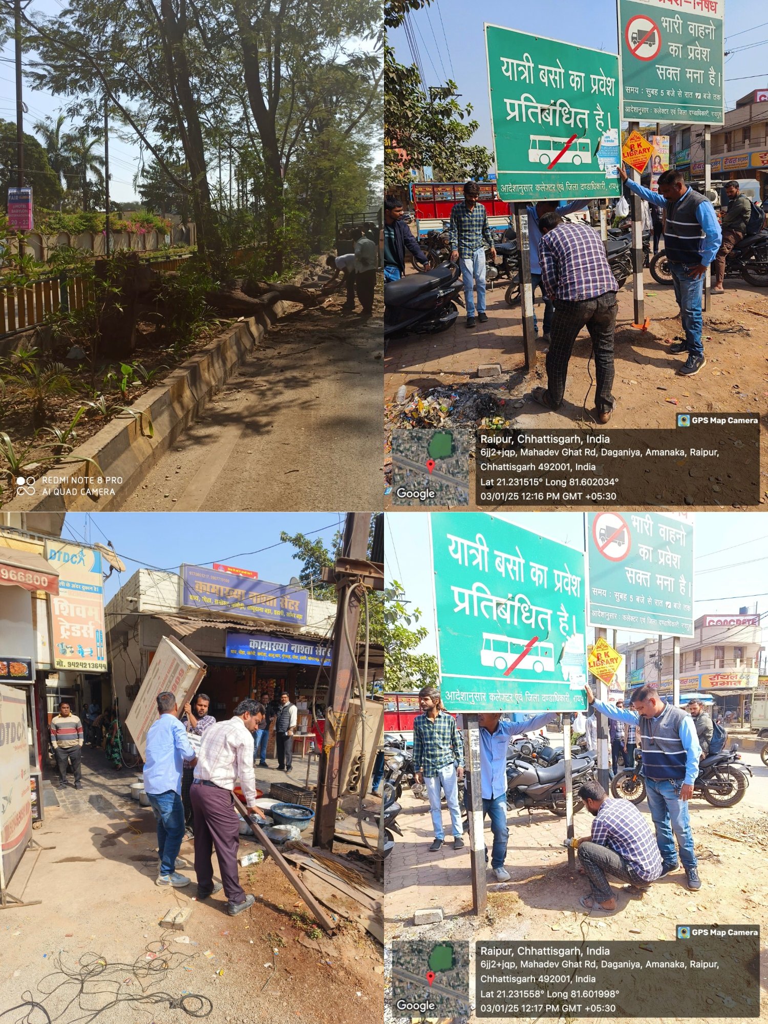 नगर निगम आयुक्त श्री अबिनाश मिश्रा ने बताया कि कलेक्टर डाॅ. सिंह के निर्देश पर वीआईपी रोड के सड़कों के किनारे लगे पेड़ों की छटाई की जा रही है। इसके लिए नगर निगम और वन विभाग की टीम का गठन किया गया है। संयुक्त टीम वीआईपी रोड के अलावा प्रमुख जिन भी मार्गाें में वृक्षों की वजह से यातायात संचालन में बाधा आ रही है, उन वृक्षों की छटाई करेगी। रायपुरा ओव्हर ब्रिज के नीचे वाली सड़कों में यातायात बाधित न हो, इसके लिए बोर्ड्स को हटाने की कार्रवाई की जा रही है। साथ ही उन मार्गाें को चौड़ा किया जा रहा है। शंकर नगर क्षेत्र में सड़कों के किनारे लगे बिजली के पोल को हटाकर शिफ्ट किया जा रहा है। इसके बाद उन मार्गाें को भी चौड़ा किया जाएगा।