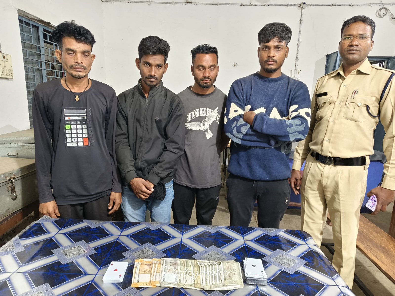 आरोपियों के कब्जे से नगदी रकम 14080/ रूपये एवं 52 पत्ती तास को किया बरामद