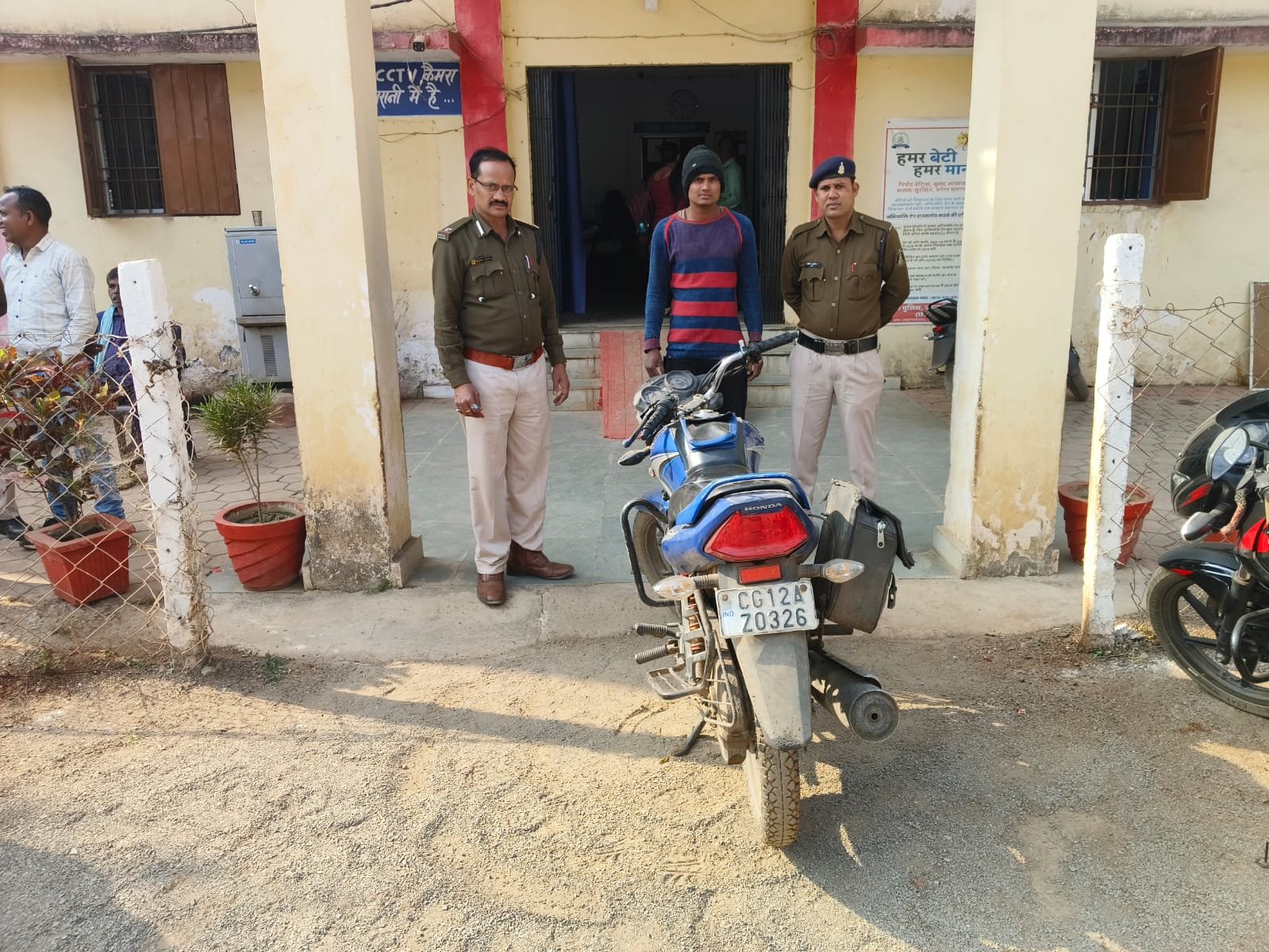 जप्ती – मो0सा0 सी. बी. साइन क्रमांक सीजी-12 ए. जेड. 0326 कीमती 20000 हजार रुपए को बरामद किया गया
