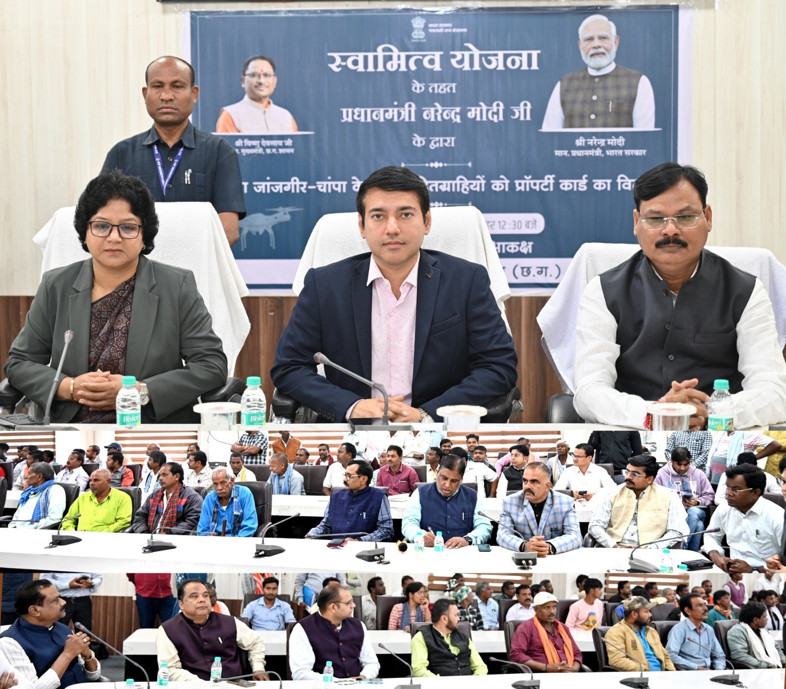 जांजगीर-चांपा :- प्रधानमंत्री श्री नरेन्द्र मोदी द्वारा छत्तीसगढ़ सहित देश भर में स्वामित्व योजना के तहत वर्चुअल प्रॉपर्टी कार्ड वितरण 18 जनवरी 2025 को किया गया। जिला स्तरीय कार्यक्रम जिला पंचायत के सभाकक्ष में वर्चुअल माध्यम से आयोजित किया गया। इस दौरान प्रधानमंत्री श्री नरेन्द्र मोदी ने वर्चुअल माध्यम से स्वामित्व योजना से लाभान्वित देश के विभिन्न हितग्राहियों से संवाद भी किया। जिले के स्वामित्व योजना के लाभान्वित हितग्राहियों को उपस्थित अतिथियों के द्वारा प्रापर्टी कार्ड का वितरण किया गया।