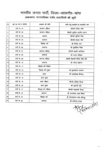 JANZGIR BREAKING: भाजपा ने जारी की प्रत्याशियों की सूची, देखें लिस्ट…