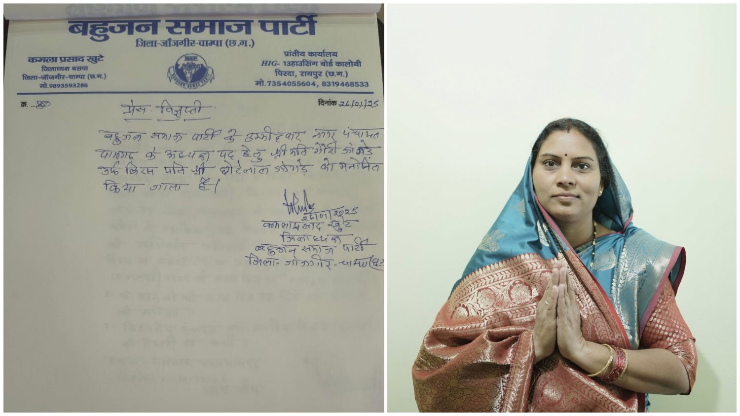 पामगढ़ :- नगर पंचायत पामगढ़ से बहुजन समाज पार्टी ने अध्यक्ष पद के लिए गौरी छोटू जांगड़े को प्रत्याशी बनाया है। जिससे पार्टी के कार्यकर्ताओं में खुशी की लहर है। इसकी जानकारी बहुजन समाज पार्टी के जिलाध्यक्ष कमला प्रसाद खूंटे ने प्रेस रिलीज जारी करके।