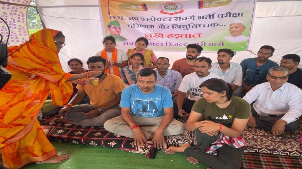 दरअसल पिछले 6 वर्ष से अपने रिजल्ट के इंतजार करते हुए प्रदेशभर के सब इंस्पेक्टर संवर्ग भर्ती परीक्षा के अभ्यर्थी अंतिम परिणाम/चयन सूची के मांग के लिए प्रदेश के अलग अलग जिलों से गृहमंत्री विजय शर्मा से मुलाकात करने बड़ी संख्या में उनके निवास रायपुर पहुंचे थे। गृहमंत्री से उनकी मांग है कि नियुक्ति दो या तो जीवन से मुक्ति (इच्छामृत्यु) दो। पुलिस विभाग सिर्फ गृह मंत्री का आदेश का इंतजार में हैं। जैसे ही गृहमंत्री शर्मा से हरी झंडी मिलेगी एक दिन के अंदर रिजल्ट आ जाएगा। इसीलिए प्रदेश भर की अभ्यर्थी गृहमंत्री से मिलने राजधानी रायपुर पहुंचे थे। बीती रात गृह मंत्री से लगभग दो घंटे चर्चा के बाद अभ्यार्थियों ने अपना अनशन खत्म कर दिया है।