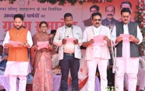 रायपुर :- मुख्यमंत्री श्री विष्णुदेव साय की गरिमामयी उपस्थिति में नगर पालिका परिषद, जशपुरनगर के नवनिर्वाचित अध्यक्ष श्री अरविंद भगत एवं 20 वार्डों के पार्षदों का शपथ ग्रहण समारोह आज स्वामी आत्मानंद शासकीय बालक उच्चतर माध्यमिक विद्यालय परिसर जशपुर में सम्पन्न हुआ।इस अवसर पर मुख्यमंत्री श्री साय ने नवनिर्वाचित जनप्रतिनिधियों को बधाई और शुभकामनाएँ देते हुए कहा कि नगर की स्वच्छता, सुव्यवस्था और समृद्धि सुनिश्चित करने के लिए पार्षदगण अपनी पूरी ऊर्जा और प्रतिबद्धता के साथ कार्य करें। नागरिकों की अपेक्षाओं पर खरा उतरना ही आपकी सबसे बड़ी जिम्मेदारी होगी।