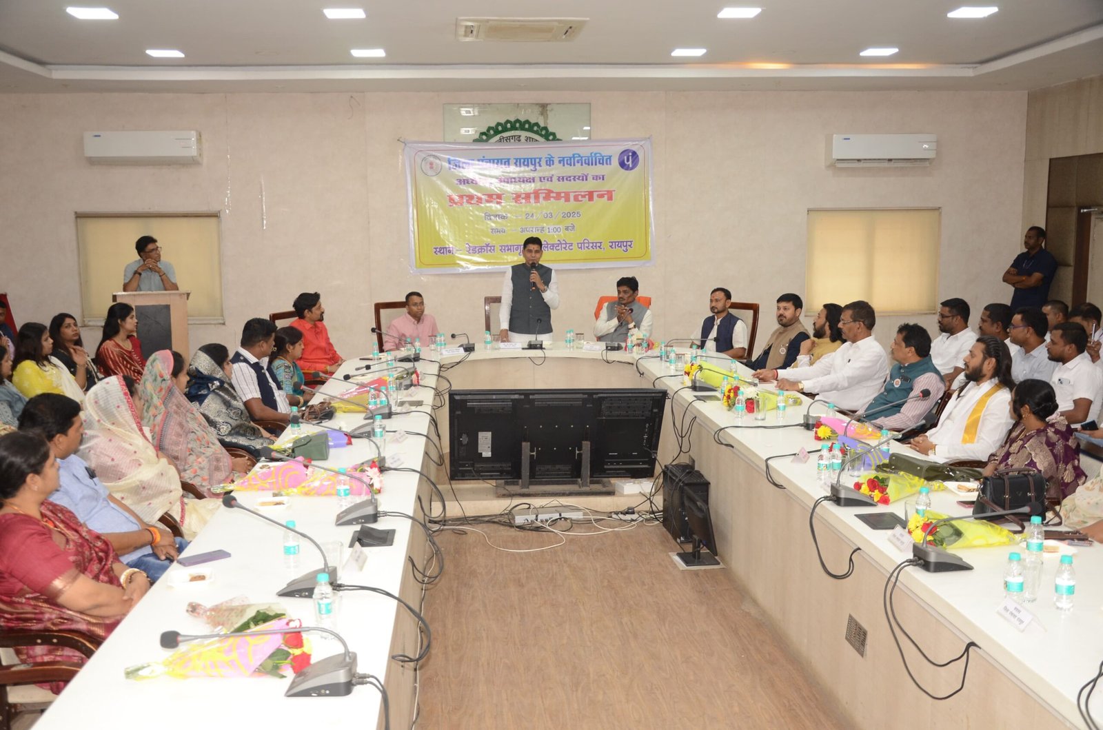 रायपुर, 24 मार्च 2025। त्रिस्तरीय पंचायत आम निर्वाचन 2025 के तहत जिला पंचायत रायपुर के नवनिर्वाचित अध्यक्ष, उपाध्यक्ष और सदस्यों का प्रथम सम्मिलन आज कलेक्टोरेट परिसर स्थित रेड क्रॉस सभाकक्ष में आयोजित हुआ। इस अवसर पर जिला पंचायत रायपुर के नवनिर्वाचित अध्यक्ष श्री नवीन कुमार अग्रवाल, उपाध्यक्ष श्री संदीप यदु और अन्य सदस्यों ने शपथ ग्रहण के बाद कार्यभार ग्रहण किया।