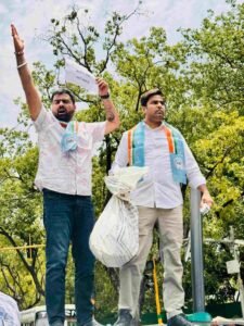 नई दिल्ली/रायपुर :- देश में बढ़ती बेरोजगारी समेत कई मुद्दों को लेकर नई दिल्ली में NSUI ने संसद घेराव आंदोलन किया, जिसमें छत्तीसगढ़ समेत देशभर के हजारों NSUI कार्यकर्ता शामिल हुए। इस आंदोलन में लोकसभा के नेता प्रतिपक्ष कांग्रेस नेता राहुल गांधी भी शामिल हुए और आएसएस के खिलाफ खुलकर अपनी बात रखी. NSUI नेताओं ने भी NEP 2020, पेपर लीक की समस्या, बढ़ती बेरोजगारी, शिक्षा का भगवाकरण और UGC के नए नियमों के खिलाफ आवाज उठाया प्रदर्शन के दौरान एनएसयूआई के राष्ट्रीय अध्यक्ष वरुण चौधरी एवं दिल्ली प्रभारी हनी बग्गा पर दिल्ली पुलिस ने गैर जमानती धाराएं लगाकर FIR दर्ज किया और दोनों नेताओं को पुलिस ने कल रात ही गिरफ्तार कर लिया, जिनकी आज जमानत पर रिहाई की गई।