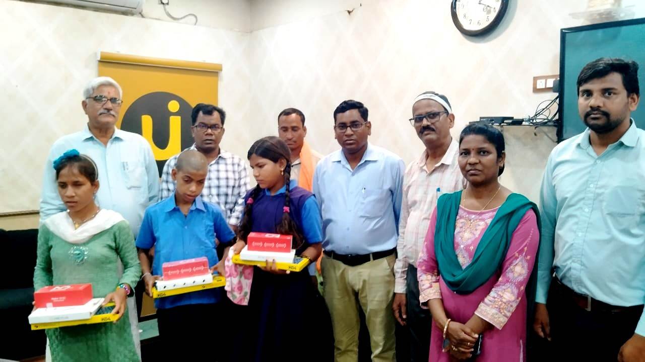 समावेशी शिक्षा अंतर्गत दृष्टिबाधित बच्चों को किया गया मोबाईल, की बोर्ड, हेडफोन एवं ओटीजी का वितरण