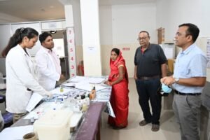 कलेक्टर ने नेत्र विभाग, पुरुष एवं महिला चिकित्सा कक्ष, ऑपरेशन थियेटर, पुरुष वार्ड, ड्रेसिंग रूम, दंत चिकित्सा कक्ष, एक्स-रे कक्ष, पैथोलॉजी लैब, आयुष्मान कक्ष एवं दवा वितरण काउंटर का भी निरीक्षण किया। कलेक्टर ने अस्पताल में भर्ती मरीजों से बातचीत कर उन्हें मिलने वाली चिकित्सा सुविधाओं एवं अन्य व्यवस्थाओं की जानकारी ली। उन्होंने महिला वार्ड में भर्ती महिलाओं से उनके स्वास्थ्य की जानकारी ली और नवजात शिशुओं के नियमित टीकाकरण सुनिश्चित करने के निर्देश दिए। इसके पश्चात कलेक्टर श्री महोबे ने पोषण पुनर्वास केंद्र में भर्ती शिशु की माताओं से बातचीत कर मिलने वाली सुविधाओं की जानकारी ली और उपस्थित अधिकारियों को मातृ एवं शिशु पोषण और स्वास्थ्य पर विशेष ध्यान देने के निर्देश दिए।