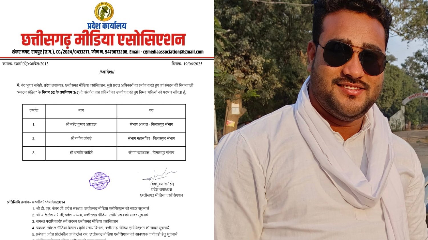 धनवीर जाहिरे बने छत्तीसगढ़ मीडिया एसोसिएशन बिलासपुर संभाग के उपाध्यक्ष, नारद 24 न्यूज चैनल के संपादक को मिली अहम जिम्मेदारी, पत्रकारों में हर्ष की लहर