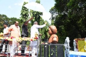 पेंड्रा में मुख्यमंत्री श्री बघेल ने इंदिरा उद्यान में पूर्व प्रधानमंत्री स्व. श्रीमती इंदिरा गांधी की प्रतिमा का अनावरण किया