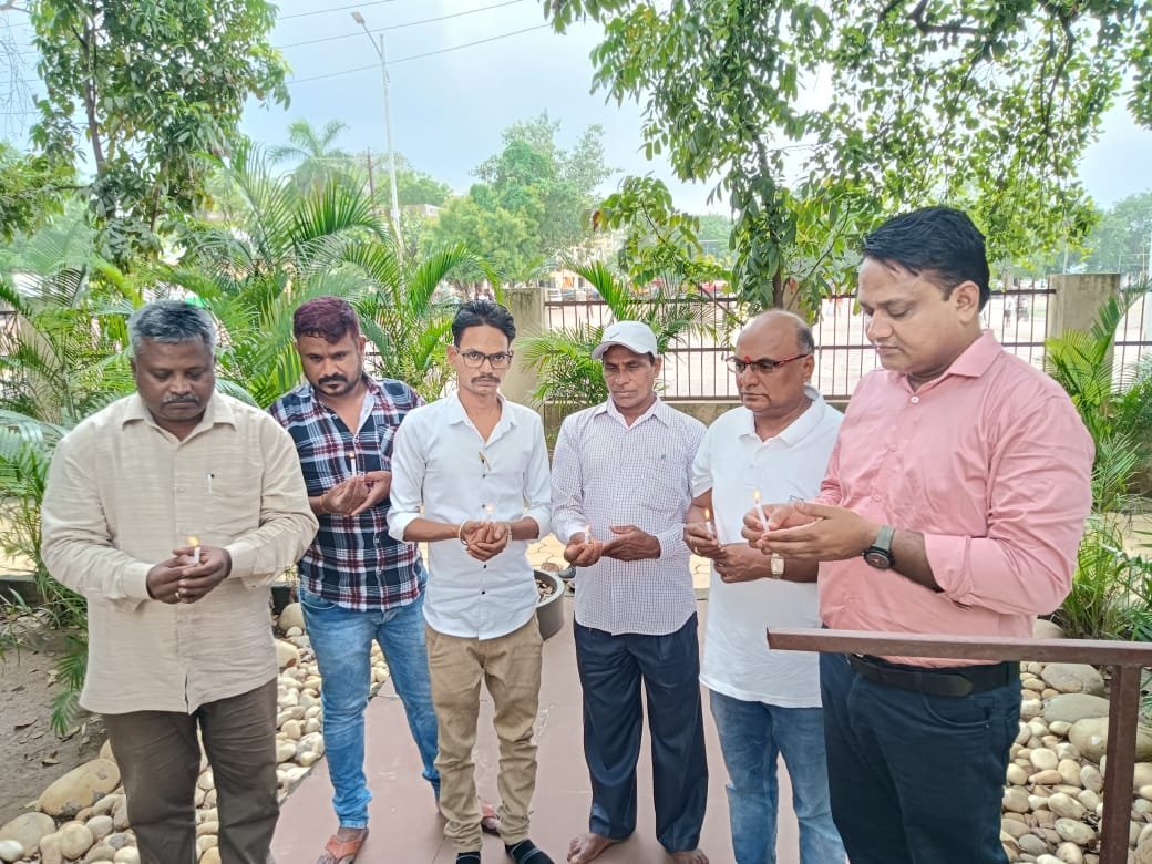 शिवरीनारायण 27 जून 2025। टेम्पल सिटी शिवरीनारायण स्थित श्री रामायणा कैफेटेरिया में आज प्रेस क्लब शिवरीनारायण के द्वारा प्रख्यात हास्य कवि पद्मश्री डॉ. सुरेंद्र दुबे जी की स्मृति में श्रद्धांजलि सभा का आयोजन किया गया। भगवान श्रीराम, लक्ष्मण और माता शबरी की प्रतिमा के समक्ष मोमबत्ती जलाकर मौन धारण कर उन्हें भावभीनी श्रद्धांजलि अर्पित की गई।